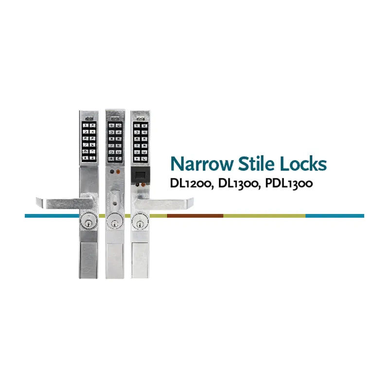 Refs: Alarm Lock narrow-stile overview & DL1200 programming/installation sheets. :contentReference[oaicite:0]{index=0}
