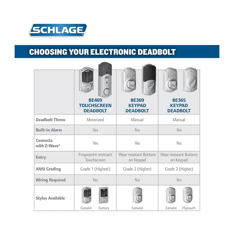 Schlage BE469 Touchscreen Deadbolts can be used as a single standalone deadbolt, but also have the optional feature of tying into the home automation system which allows for total home control and automation through smartphones or any internet connected device.